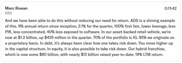 To avoid the risk of selective quoting, it’s worth including his subsequent paragraph to avoid gerrymandering his words. He was certainly not negative about Apollo’s business prospects.